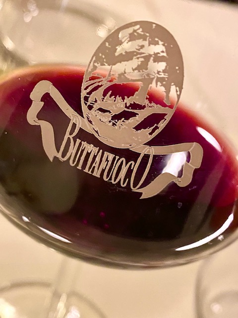 Il marchio rappresentativo adottato per il Buttafuoco è composto da un ovale (rievocazione della botte tipica dellOltrepò Pavese) sostenuto dalla scritta Buttafuoco, dal quale si dipartono due nastri rossi rappresentativi dei due torrenti, il Versa e lo Scuropasso, che delimitano la zona storica di produzione. Allinterno la sagoma di un veliero sospinto da vele infuocate a ricordare che nella seconda metà del 1800, la Marina Imperiale austro-ungarica varò una nave dal nome Buttafuoco”.
