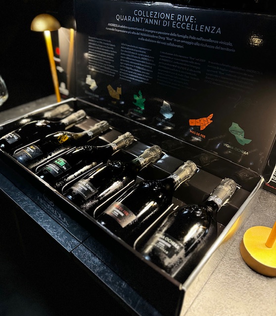Per festeggiare il quarantesimo anniversario, la cantina Andreola di Farra di Soligo ha deciso di riunire in un cofanetto, 6 Valdobbiadene DOCG a menzione “Rive”. Il termine “Riva” indica, nella parlata locale, le pendici delle colline scoscese che caratterizzano il Conegliano Valdobbiadene. Il Rive, infatti, è prodotto esclusivamente con uve provenienti da un unico Comune o frazione di esso, per esaltare le caratteristiche che il territorio conferisce al vino.