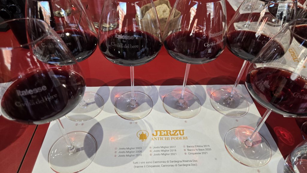 La verticale ha evidenziato la capacità di dare un’espressione unica ad ogni singolo millesimo, pur mantenendo un filo conduttore identitario. Un vino che unisce sapientemente classicità in stile francese con un DNA tipicamente sardo.
