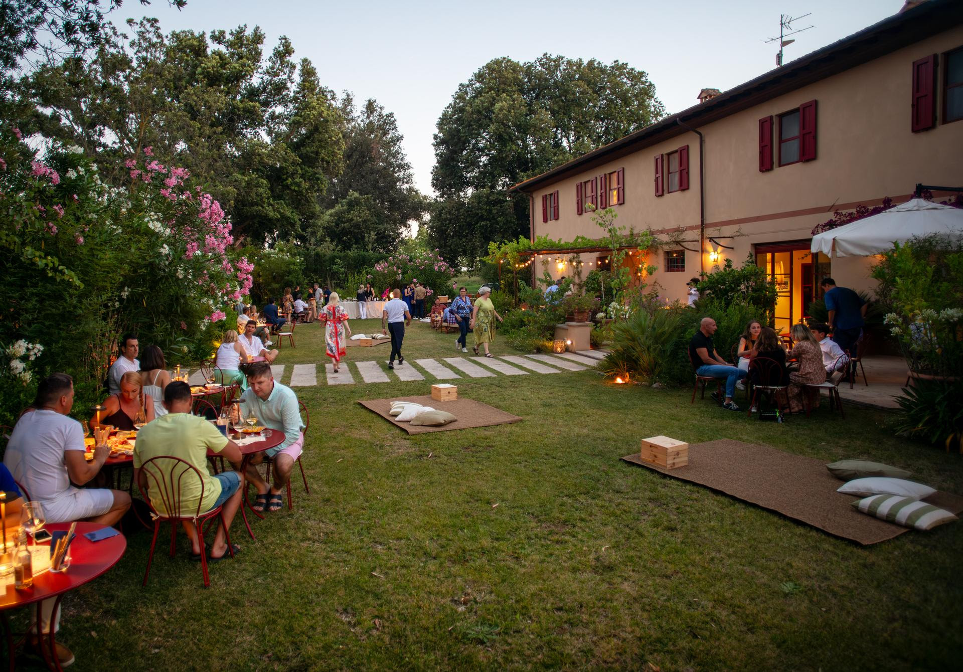 Nel giardino fiorito della cantina, situata a Donoratico, tra San Vincenzo e Castagneto Carducci (LI), proseguono le serate all’insegna della convivialità, del buon vino e del divertimento.
