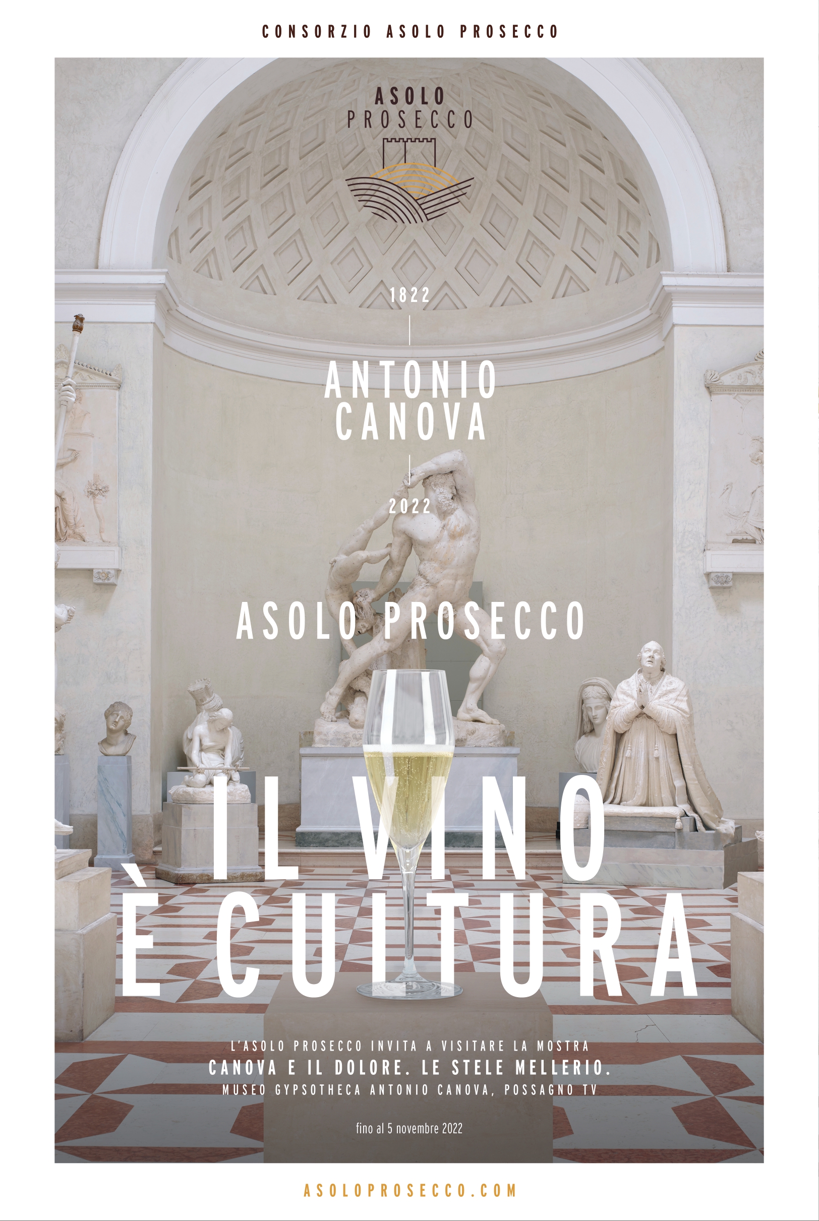 L’Asolo Prosecco omaggia il genio di Antonio Canova con una campagna di comunicazione nazionale nella ricorrenza del bicentenario della morte dello scultore, massimo esponente del neoclassicismo italiano. L’artista era nato a Possagno (Treviso), nel cuore della zona di produzione dell’Asolo Prosecco, e nello splendido Museo Gypsotheca Antonio Canova, allestito nella sua casa natale, è in corso fino al 5 novembre la mostra “Canova e il dolore. La stele Mellerio”. Tra i partner della rassegna il Consorzio Asolo Prosecco, impegnato nel sottolineare il forte legame tra la denominazione e le bellezze artistiche e naturali del suo territorio. Proprio per questo, tutte le immagini della campagna, che ritraggono le splendide sculture custodite all’interno del Museo, sono accompagnate dal payoff “Il Vino è cultura”, già utilizzato dal Consorzio Asolo Prosecco per promuovere, lo scorso inverno, la cittadina di Asolo, uno dei borghi più belli d’Italia.