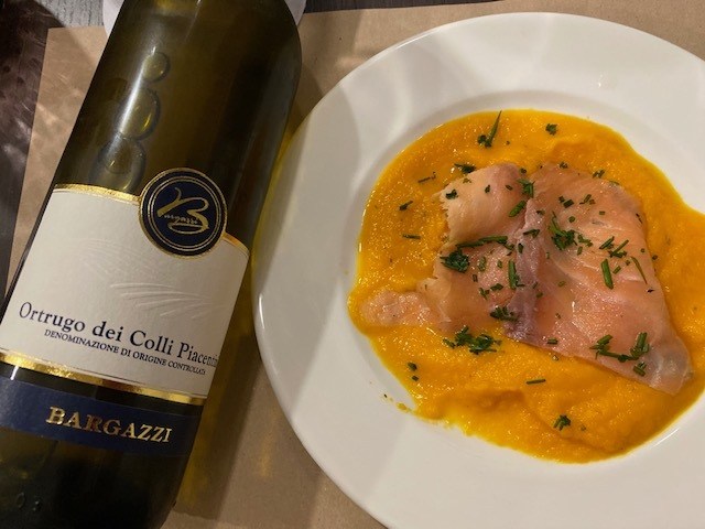 Gutturnio Superiore dei Colli Piacentini 2018 Bonarda 30%, Barbera 70%. Un calice rosso rubino luminoso con pennellate porpora. Subito regala sentori floreali e fruttati, viola, fragola, visciola e ribes. Bella l’entrata in bocca con tannini levigati. Un vino che entra piano piano, quasi in punta di piedi, non per mancanza di personalità, ma, come il suo produttore, ama mostrarsi lentamente. Tiziano Bargazzi, all’inizio timido, cambia completamente quando inizia a parlare dei suoi vini e della sua Azienda. Bello l’equilibrio fra freschezza e sapidità con una discreta persistenza