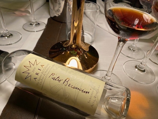 Aria Occhio di Pernice 2008 la prima vendemmia è stata il 2007 ottenuto con solo Uve Sangiovese. Un calice color ambra scura luminosa, note di albicocca disidratata, miele di castagno, frutti di bosco macerati e uvetta di Corinto. Il sorso è ammaliante, per dolcezza e densità, equilibrato, in bocca ritorna una bella freschezza e note di frutta secca. Un calice non è sufficiente, viene voglia di degustarlo per scoprire le sue mille sfaccettature. Talmente particolare che più che descriverlo è da provare.