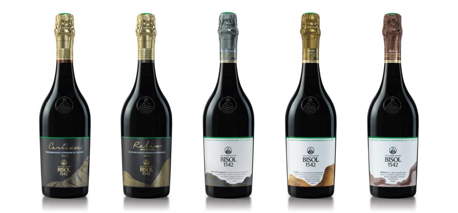 La linea Bisol è fatta solo di Prosecco Superiore DOCG e vuole raccontare la varietà del territorio di Valdobbiadene e sperimentare tutte le sfumature del Prosecco Superiore, perché ciascuna etichetta è espressione di un particolare terroir e di una specifica composizione del terreno. Una collezione fatta di eccellenza senza compromessi, che racconta il faticoso lavoro della terra, frutto di una viticoltura eroica. Proprio per valorizzare ed avere il massimo rispetto per l’identità del territorio, sono state create due nuove etichette della Denominazione Rive: il Relio Rive di Guia, che vuole essere il vertice della produzione della Casa e il Rive di Campea, espressione del più importante vigneto di proprietà.