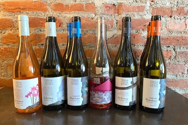 Alle pendici dell’Etna, nella zona Sud Est, in un abbraccio tra il mare e “a Muntagna”, in una zona vocata alla viticultura fin da epoche lontane, troviamo Terra Costantino. L’azienda nasce nel 1970 quando Dino Costantino acquista 10 ettari di terreno tra le contrade Blandano e Cannarozzo, a Viagrande, che comprendono anche due palmenti del 1700 (vecchie cantine) e ne recupera le vigne ad alberello che affondano le radici in antiche colate laviche. Terra Costantino è la prima azienda dell’Etna ad aver ricevuto la certificazione biologica nel 2001, con la cantina interrata, scavata tra le colate laviche di oltre 50.000 anni fa, è stata tra le prime cantine ecosostenibili del Sud Italia. In vigna non c’è distinzione tra i filari di uve a bacca bianca e uve a bacca nera, una tecnica tradizionale che affonda le radici in un lontano passato detta “coltivazione maritata”. Alcuni impianti hanno 60 anni, altri ne hanno “solo” 40, ma non è difficile tra questi trovare viti di 150 anni.