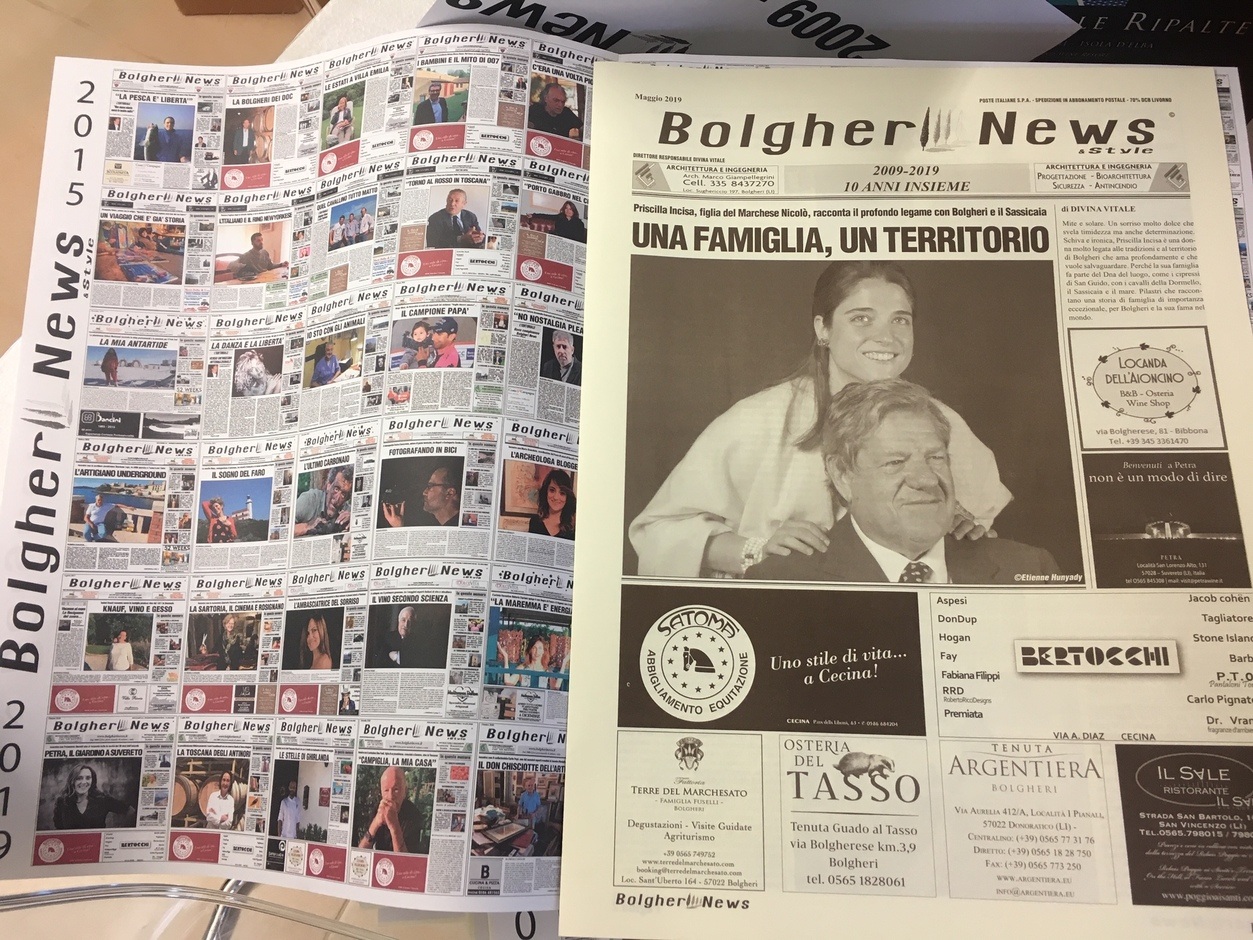Bolgheri News, il free press mensile toscano festeggia i primi dieci di attività. Fu presentato nell’aprile del 2009 alla cantina del Castello di Bolgheri. Già da allora produttori, intellettuali e amici del borgo abbracciarono il progetto. Bolgheri è il paese da cui il mensile ha preso ispirazione con i centenari ed unici cipressi ma poi si è allargato alla Toscana e al mondo grazie alle notizie che interessano il mondo vitivinicolo e agricolo del territorio. Col tempo si è evoluto aggiungendo la rubrica Style, in inglese, molto apprezzata dai turisti. Un ristretto ma ben affiatato gruppo di amici e giornalisti vi collaborano con interesse e curiosità contribuendo negli anni alla sua crescita.