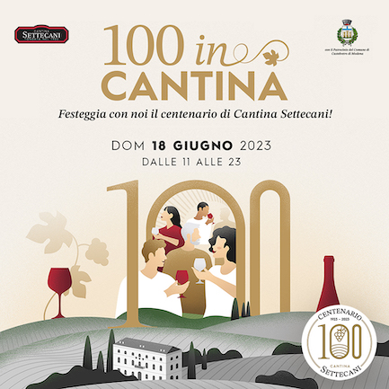 Dal 1923 cento anni di storia, lavoro e impegno, decine di conferitori, migliaia di bottiglie e un’unica grande passione: il vino. Cantina Settecani celebra il suo primo centenario con una grande festa: “100 in Cantina”, domenica 18 giugno a partire dalle ore 11.00. L’appuntamento per tutti sarà presso la sede storica della Cooperativa a Settecani – in provincia di Modena, nell’omonima frazione al confine tra le località di Castelvetro, Castelnuovo Rangone e Spilamberto – per una giornata a ingresso libero all’insegna di buon vino, musica, divertimento e intrattenimento, anche per i più piccoli.
