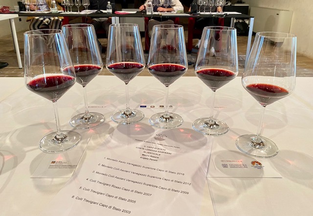 Durante la manifestazione Rosso Bordò a Palazzo Giacomelli, Treviso, letteralmente presa d’assalto dagli amanti dei vini rossi e dei tagli bordolesi è andata in scena una verticale unica di Capo di Stato condotta da Angelo Peretti, direttore di The Internet Gourmet, e da Mauro Rasera, enologo di Loredan Gasparini dal 1987 che ha emozionato con pensieri e ricordi di un vino che è una parte di storia del Montello. Col tempo, spiega Mauro Rasera, il vigneto originale è stato usato per creare nuovi impianti partendo dai cloni del vigneto delle Cento piante. Potremmo dire un vigneto fotocopia di quello originale, tuttora in produzione.