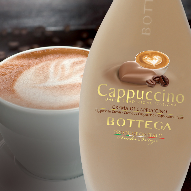 Cappuccino Bottega sviluppa una moderata gradazione alcolica (15% vol.). Accattivante e suadente, si caratterizza per l’armonioso equilibrio tra caffè e latte, con sentori tostati di cereali, caramello, cacao, vaniglia e note finali di fiori e di frutta secca. Al palato spiccano le note di panna, accompagnate dal sapore moderatamente amaro e dalla bilanciata acidità del caffè.
