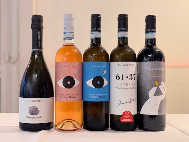 Sulle pendici del Vesuvio nel 2004 nasce Casa Setaro, dalla passione di una famiglia che, con grande dedizione, si è dedicata alla valorizzazione e alla riscoperta degli antichi vitigni autoctoni della regione, alcuni dei quali a rischio estinzione, come il Caprettone. Alla guida Massimo Setaro, affiancato dalla moglie Maria Rosaria che insieme salvaguardano la storia della viticoltura vesuviana. Cuore e orgoglio dell’azienda è la vigna a piede franco al cui interno si possono trovare degli esemplari prefilosserici che, grazie alla presenza di suoli sabbiosi, limitano fortemente la diffusione del parassita, piantate con la tecnica della propaggine che consiste nell’interrare un tralcio per poi tagliarlo una volta che ha sviluppato un proprio apparato radicale.