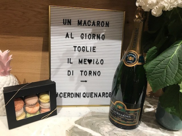 “Cerdini & Quenardel rappresenta una novità per il panorama italiano, sotto vari punti di vista. Oltre ad essere il primo negozio monomarca di champagne, si tratta anche del primo store che basa la sua proposta su un abbinamento insolito, quello che unisce lo Champagne con il gelato, i cioccolati o i macaron – ha detto Alexandre Quenardel – “Ma non solo dolce, per l’ora dell’aperitivo abbiamo creato anche la proposta “Champagne & Macarons Salati”; insomma sarà un vero concept store con nuovi abbinamenti ogni giorno”.