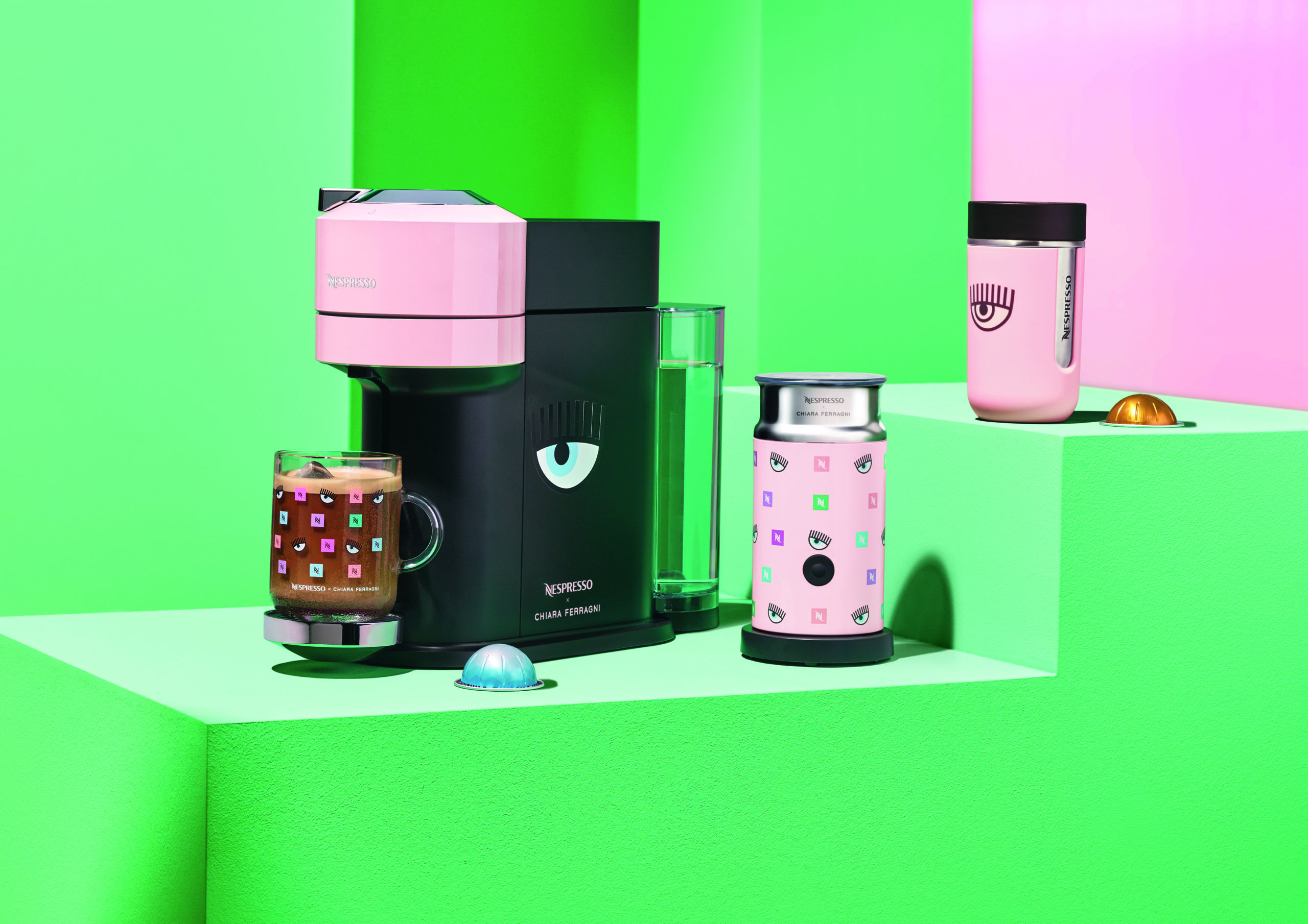 Una limited edition esclusiva firmata da Nespresso e Chiara Ferragni. Nespresso porta un tocco di stile alla sua ultima collezione estiva, grazie alla collaborazione siglata con l’imprenditrice italiana di fama mondiale Chiara Ferragni. La partnership vedrà Chiara Ferragni trasformare con il suo stile iconico alcune delle più amate macchine e accessori Nespresso. Colori vivaci e un design frizzante che sicuramente conquisteranno i fan di Nespresso e di Chiara.
