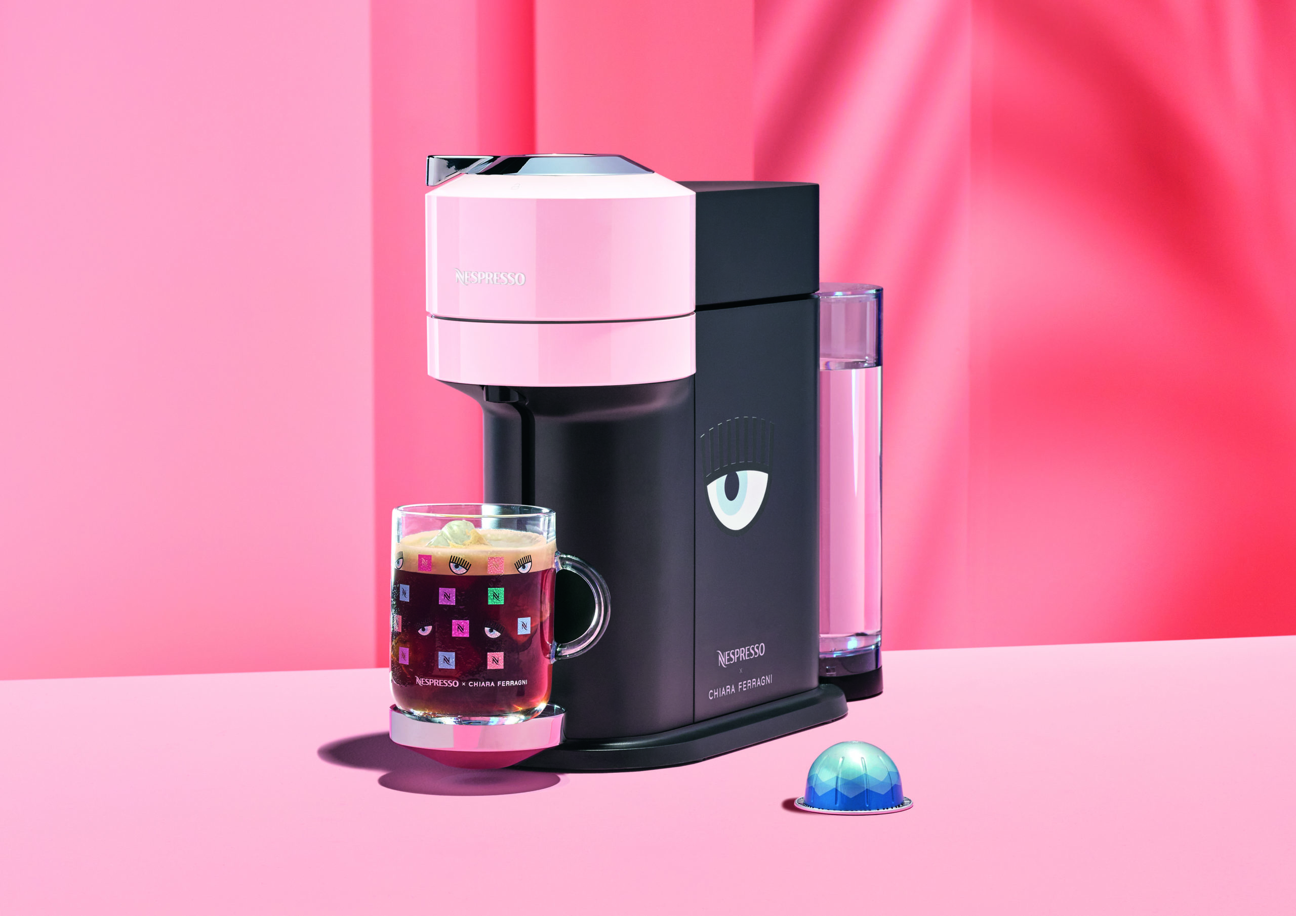 Uno stile unico e un caffè straordinario prendono forma nella macchina Vertuo Next in edizione limitata firmata Nespresso x Chiara Ferragni, disponibile nel colore rosa pastello con il suo iconico logo visibile sul laterale. La nuova e intuitiva macchina one-touch di Nespresso è in grado di preparare un’ampia gamma di caffè di diverse lunghezze in tazza, per ogni gusto o momento estivo da condividere con gli amici e la famiglia.