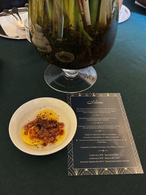Per rafforzare la sfida, sono stati anche serviti degli antipasti e due dessert a base di Zampone e Cotechino Modena IGP, realizzati dalla chef resident di “A…Casa Veronelli”, Chiara Maffioli. Il tutto accompagnato da Amarone della Valpolicella Tenuta Santa Maria Valverde e Lambrusco DOP Tenuta Venturini Baldini.