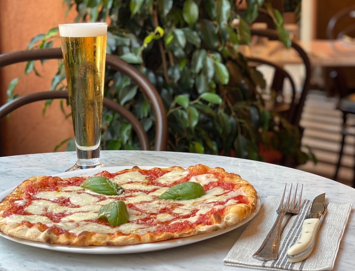 Il locale conta tre ampie sale per un totale di 100 posti indoor e 30 outdoor (a breve), compreso un banco bar dove degustare una selezione di birre italiane e ottimi vini provenienti da tutta Italia e una piccola selezione di cocktails tradizionali nell’attesa. L’interior evoca con uno stile elegante e curato le pizzerie e le trattorie di quegli anni.