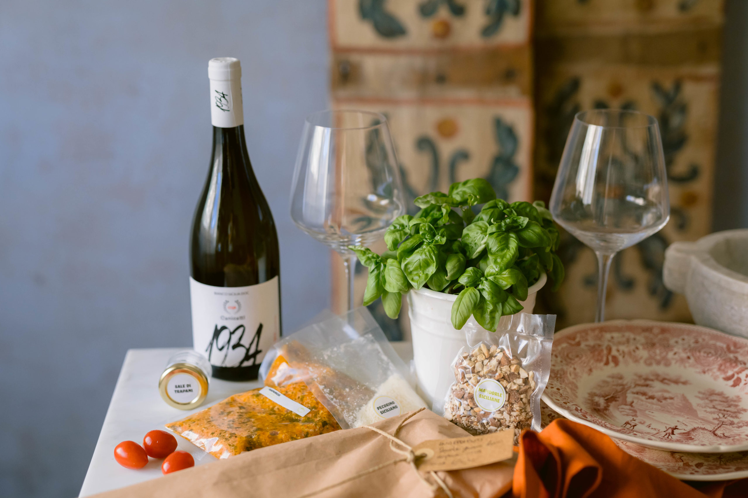 In occasione della commercializzazione di 1934 è stata lanciata un’iniziativa speciale in collaborazione con Busi.ate, il nuovo format ideato da Francesco Alagna (già patron di Ciacco Putia Gourmet a Marsala): un kit da viaggio per preparare le iconiche busiate al pesto trapanese in abbinamento al 1934 (o in alternativa al Fileno) di CVA Canicattì. Tutto il necessario per preparare a casa questo appetitoso primo piatto arriverà direttamente all’interno di una scatola in materiale ecosostenibile contenente: 400g di pasta fresca siciliana, 300g di pesto trapanese in barattolo di vetro, melanzane fritte, formaggio pecorino siciliano grattugiato, 20g di sale marino di Trapani e le indicazioni con i pochi e semplici passaggi da seguire in cucina per un risultato perfetto.