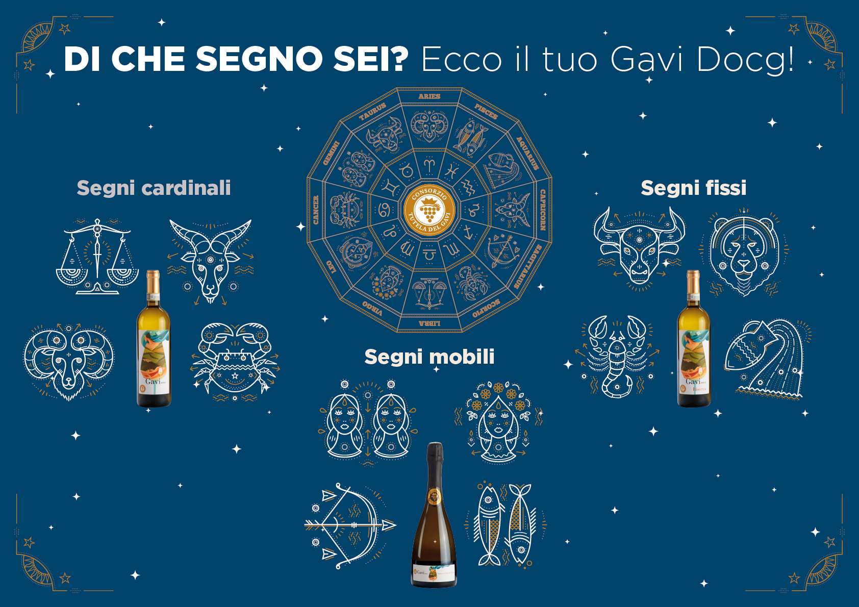 Nell’ambito delle celebrazioni del “2021 Anno del Cortese”, voluto da Regione Piemonte per valorizzare lo storico vitigno autoctono piemontese di cui il Gavi è la massima espressione, il Consorzio Tutela del Gavi ha chiesto ad Andrea Gori e Giulia Graglia, autori di “Divinando Le stelle nel bicchiere”, di indagare la natura astrologica del Gavi Docg. Un viaggio tra le tre tipologie del Grande Bianco Piemontese – Annata, Riserva, Spumante – e i segni dello Zodiaco per esplorare le affinità e evidenziare buoni auspici per i prossimi mesi.