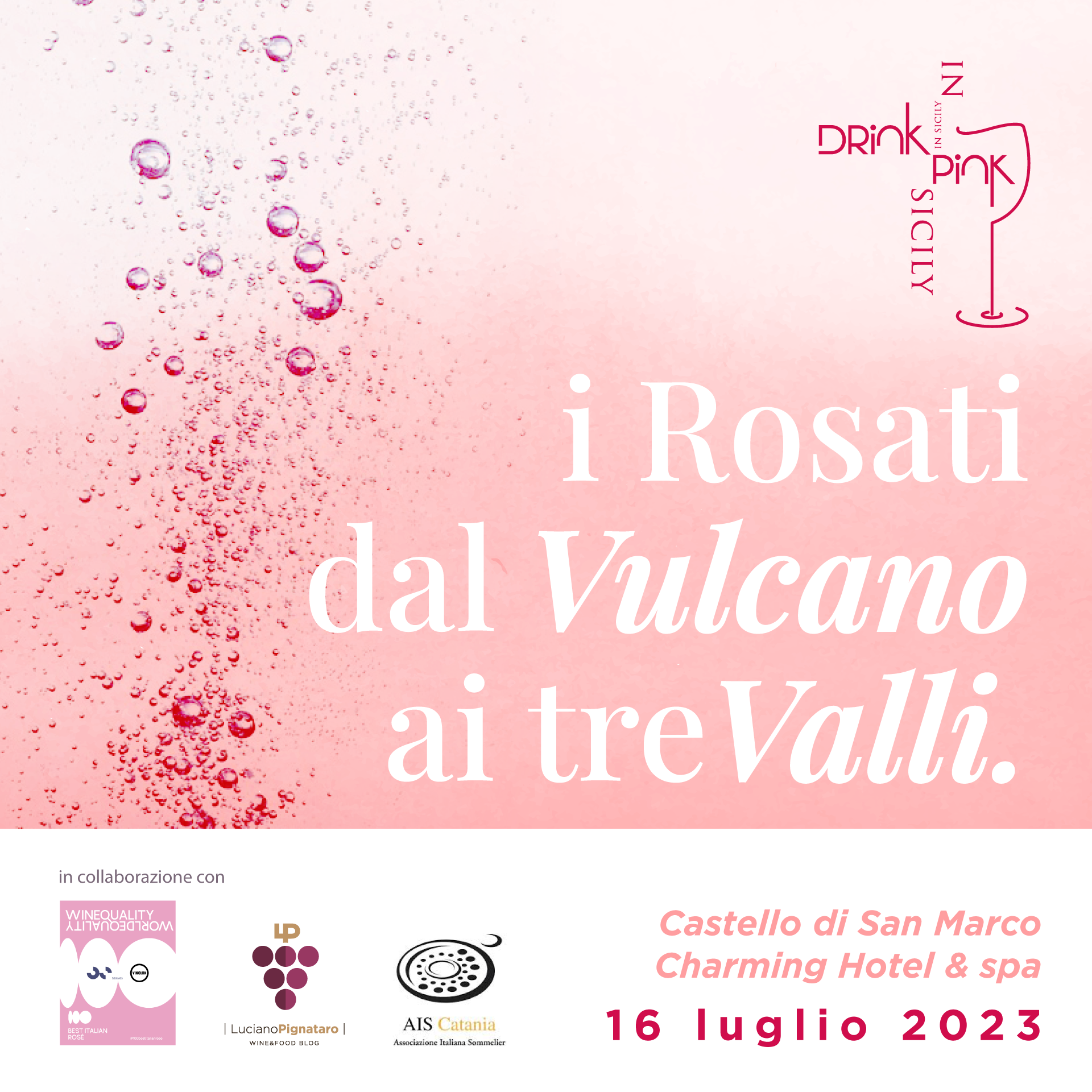 Domenica 16 Luglio la sesta edizione di Drink Pink in Sicily l’appuntamento enoico che valorizza i vini rosa siciliani in collaborazione con la guida ai migliori rosati italiani 100 Best Italian Rosé (che sarà possibile visionare sul sito web www.lucianopignataro.it). Degustazioni, incontri ma anche il nuovo contest “Best Rosè Label” che premierà la migliore etichetta: a Drink Pink in Sicily saranno presenti vini e produttori da tutta l’isola