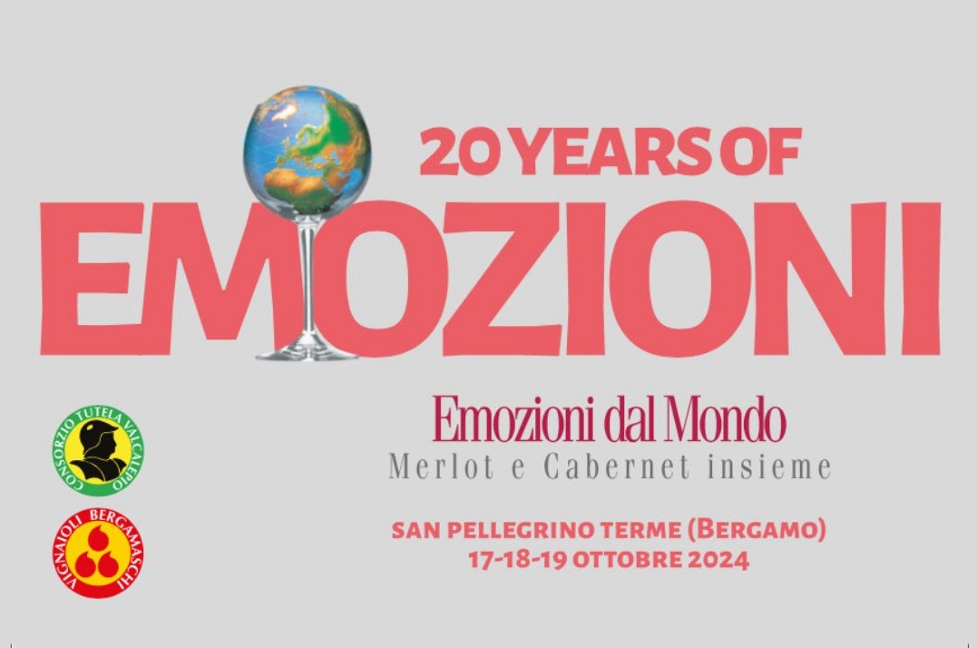 Molte le sorprese in cantiere per celebrare al meglio i primi 20 anni di «Emozioni dal Mondo Merlot e Cabernet Insieme» dalla pubblicazione di un volume tutto dedicato al Concorso alla creazione di uno speciale annullo postale dell’evento (disponibile nella mattinata del sabato), da una cena di gala in stile Belle Epoque a un convegno (organizzato in collaborazione con Consorzio Tutela Valcalepio), in programma per sabato 19 ottobre 2024presso il CineTeatro dell’Oratorio di San Pellegrino Terme sul tema «Il Vino del Futuro o il Futuro del Vino?». Al termine del convegno, come da tradizione, verranno annunciati i vini vincitori del Concorso Enologico Internazionale.