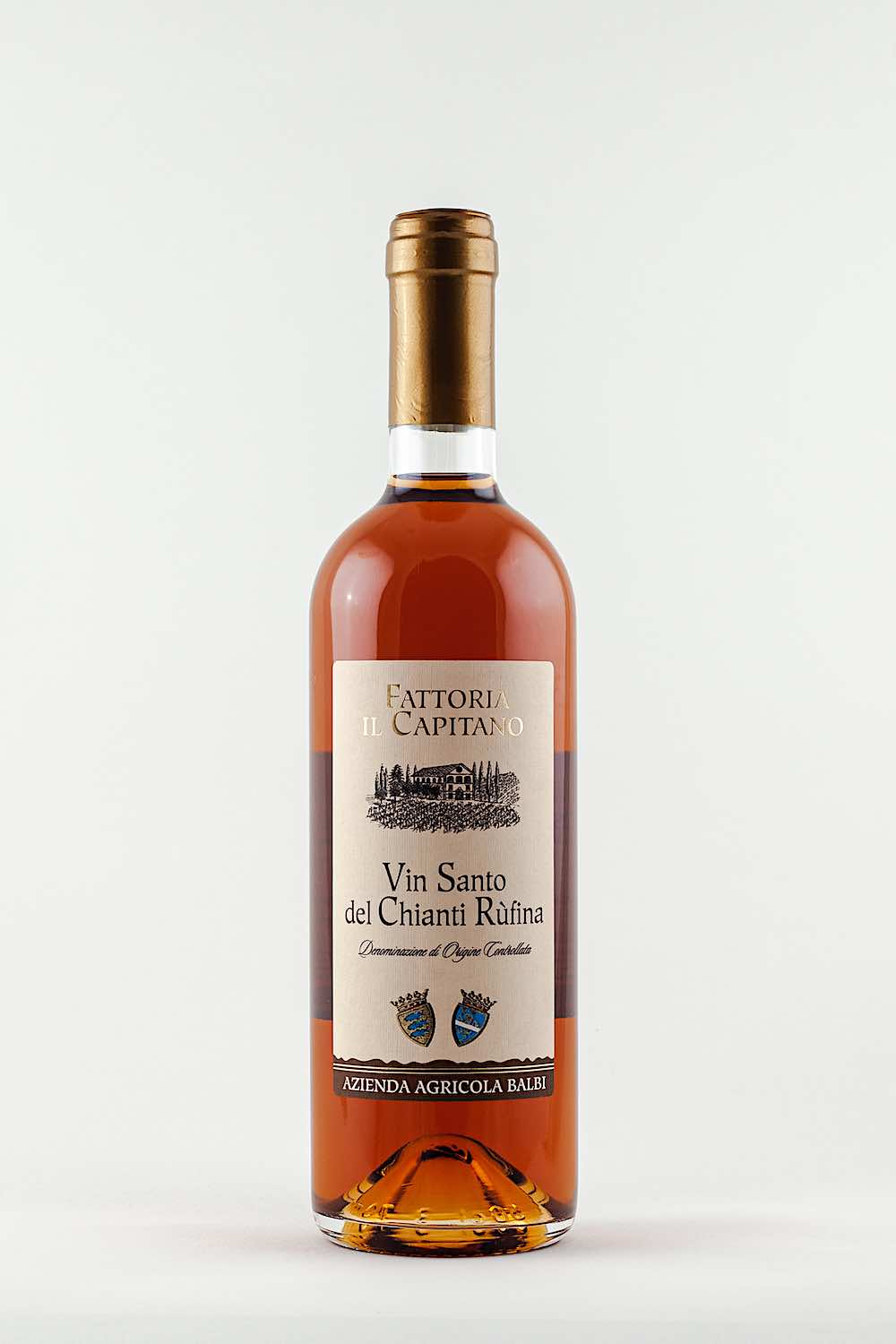 Vin Santo del Chianti Rùfina DOC 50% Trebbiano Toscano, 50% Malvasia del Chianti Bianca. Le uve vengono poste ad appassire su graticci per circa tre mesi e successivamente sottoposte a pigiatura soffice. Come da tradizione il vino fermenta e riposa per almeno 4 anni in caratelli di legno collocati nel sottotetto. Di colore ambrato intenso si declina su note di frutta disidratata e secca che dischiudono un suadente equilibrio di dolcezza, freschezza e sapidità.