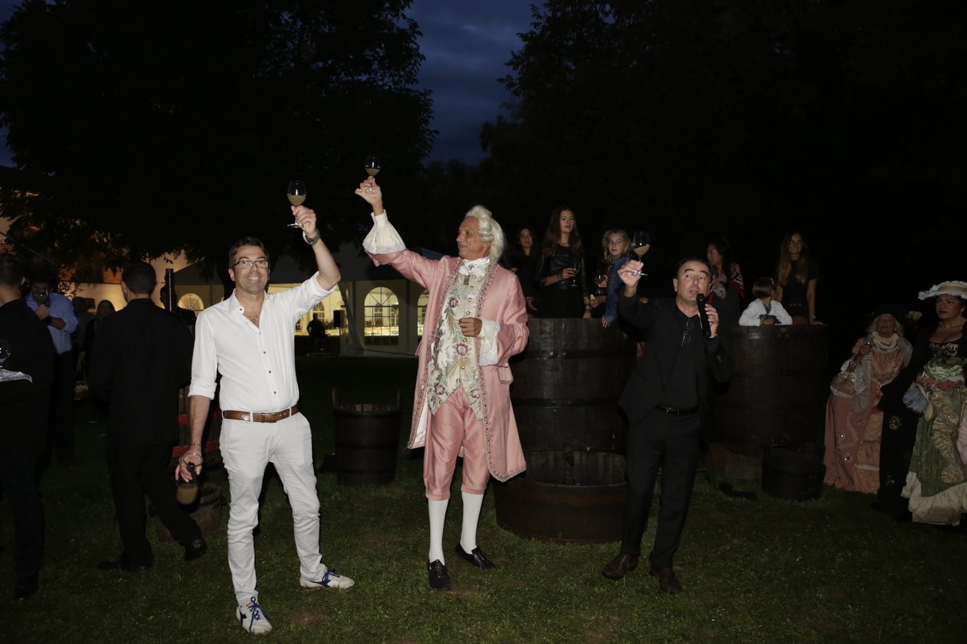 Nel tardo pomeriggio i figuranti della Compagnia de Calza di Venezia, vestiti con gli storici costumi veneziani del ‘700, hanno dato inizio a una “gara di vendemmia” tra tutti i presenti. I partecipanti, suddivisi in diverse squadre, si sono sfidati nel raccogliere la maggior quantità possibile di grappoli in un lasso di tempo di 10 minuti. Questa affascinante e goliardica vendemmia si è conclusa con la pigiatura nei tradizionali tini di legno. Alcune ragazze, anch’esse abbigliate con costumi a tema, hanno pigiato a piedi nudi le uve raccolte.