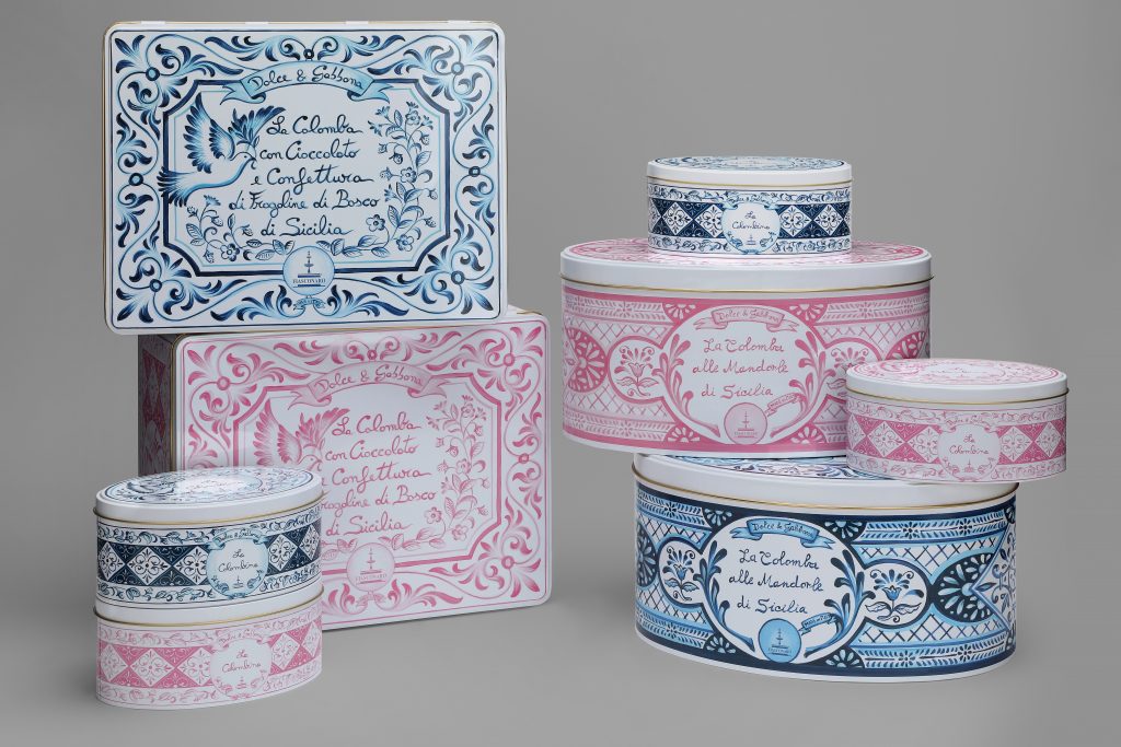 La Collezione Dolce&Gabbana Fiasconaro, espressione di una collaborazione che unisce alta pasticceria e creatività italiana, si conferma con tre proposte: la Colomba alle Mandorle di Sicilia, la Colomba al Cioccolato con Confettura di Fragoline di Bosco di Sicilia e la Colombina da 100 g senza canditi, con essenza di mandarino e glassa alle mandorle e pistacchi.