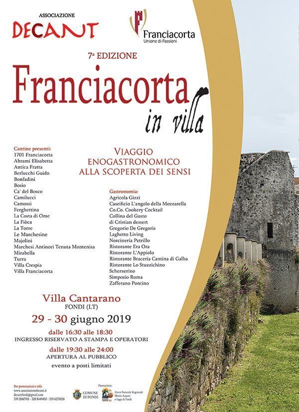 Franciacorta in Villa patrocinato dal Consorzio Franciacorta, dal Comune di Fondi e dal Parco Naturale Regionale Monti Ausoni e Lago di Fondi è un appuntamento oramai consolidato per appassionati e addetti al mestiere.