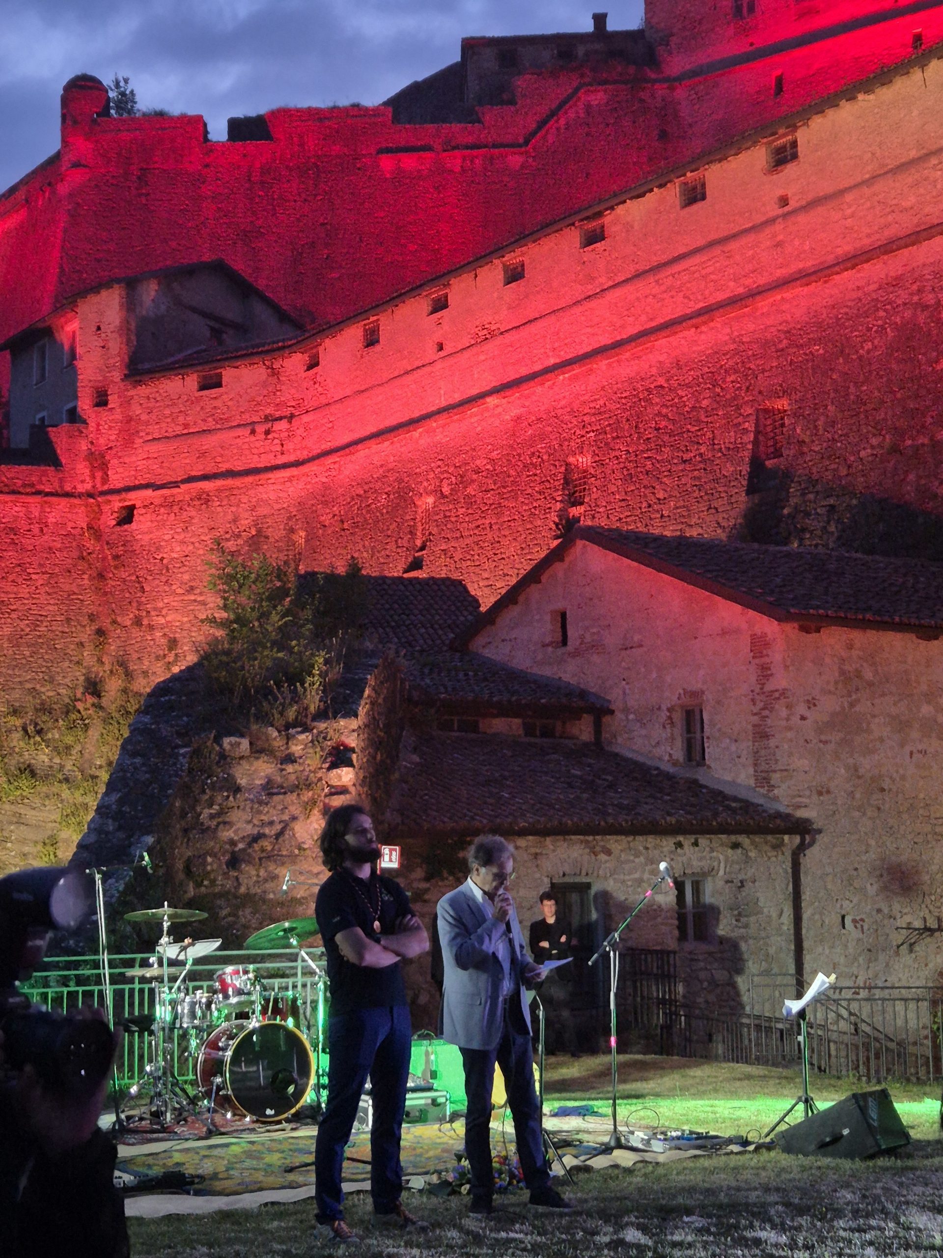 Carlo Massa (sindaco di Gavi, a destra) e Lorenzo Bisio (Presidente di GAVI GIOVANI), circondati dalla maestosa bellezza del FORTE di GAVI.