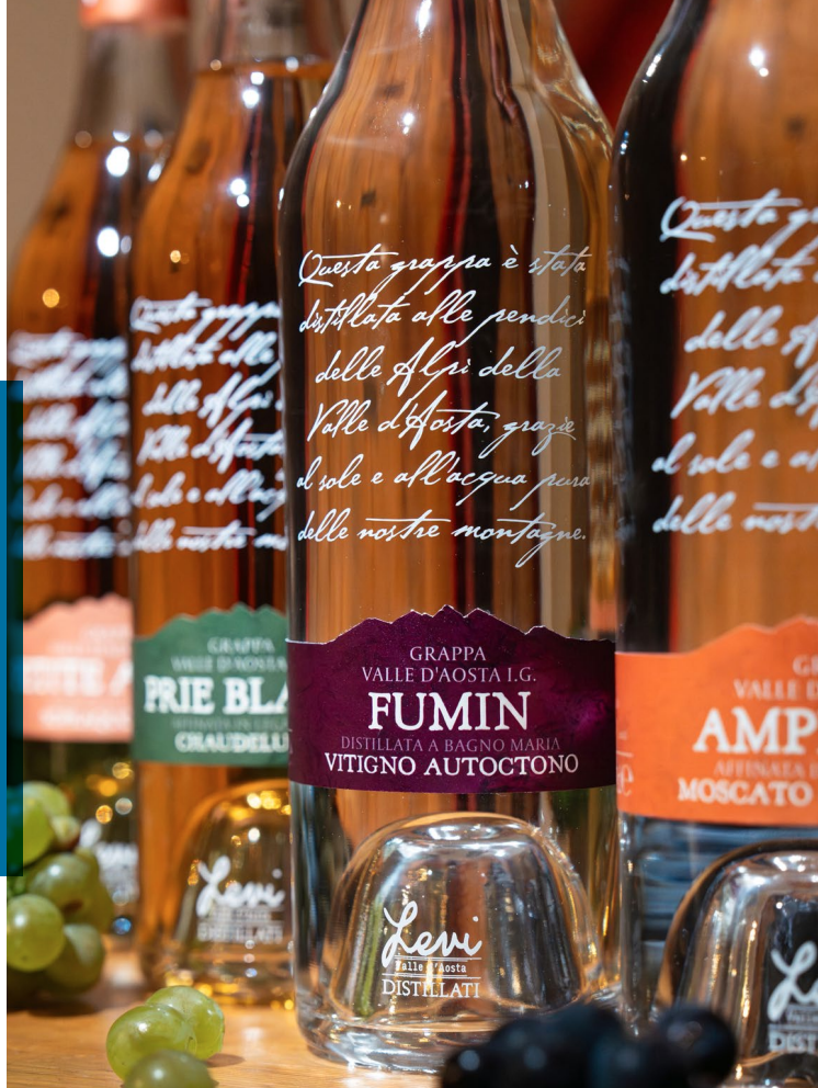 Il legame con l’alta quota è dichiarato anche nel design delle etichette: serigrafia sul vetro con la missione “raccontare la montagna con autenticità, rispetto e passione”, e il disegno del profilo di Mont Emilius e Becca di Nona. Il formato delle bottiglie è 50 cl, per dare coerenza all’intera collezione che parte dalla Grappa Solare e Guglielmo Levi. «Con queste quattro grappe volevamo dare voce alla Valle d’Aosta: ai suoi vitigni, alle sue altitudini e a quel modo unico che la montagna ha di lasciare un segno nel gusto. Inserendole nel fil rouge del nostro racconto enologico», afferma Nicola Rosset.