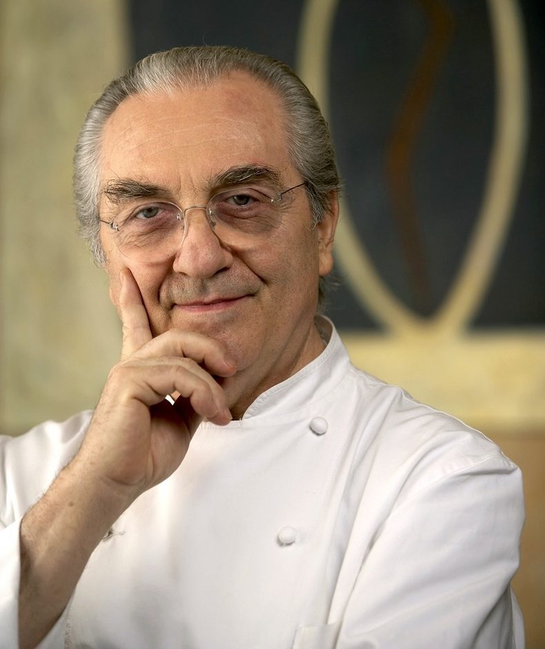 Chef e gastronomo geniale e innovatore, Gualtiero Marchesi è il cuoco italiano più famoso nel mondo. Ha dato un contributo fondamentale alla rinascita e al successo internazionale della cucina italiana. Ha fondato ALMA Scuola Internazionale di Cucina Italiana (Colorno, Parma), L’Italian Culinary Academy a New York, la Fondazione Gualtiero Marchesi per coniugare la cucina con l’arte e, più recentemente, la Casa di Riposo per cuochi.