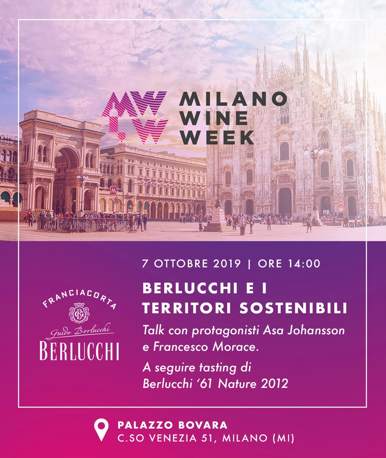 Il 7 ottobre ci sposteremo a Palazzo Bovara, cuore pulsante della MWW, dove Berlucchi firmerà una Masterclass dal titolo “Berlucchi e i Territori Sostenibili”, un approfondimento imperdibile per scoprire come evolveranno i territori vinicoli e come diventeranno sempre più visitor-friendly. A guidare l’incontro saranno Asa Johansson, giornalista svedese esperta di wine & travel e Francesco Morace, noto sociologo e curatore di Academia Berlucchi. A seguire il tasting di ’61 Nature 2012, il Franciacorta non dosato di casa Berlucchi. Nel pomeriggio, sempre a Palazzo Bovara, i Franciacorta Berlucchi saranno tra i protagonisti del Festival del Franciacorta, degustazione organizzata dal Consorzio Franciacorta.