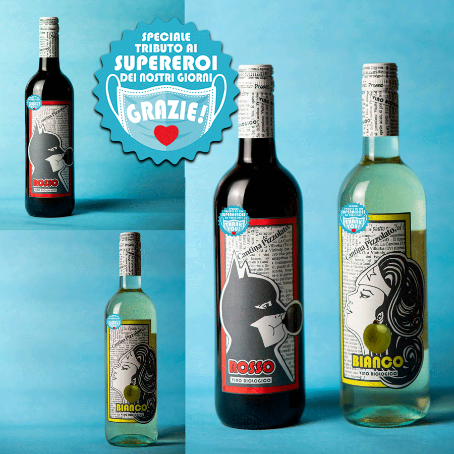 Da oggi in commercio la bottiglia della cantina Cantina Pizzolato “bio” di Treviso dedicata agli eroi dei nostri giorni il cui ricavato andrà al progetto #beyondthemask della Croce Rossa Italiana