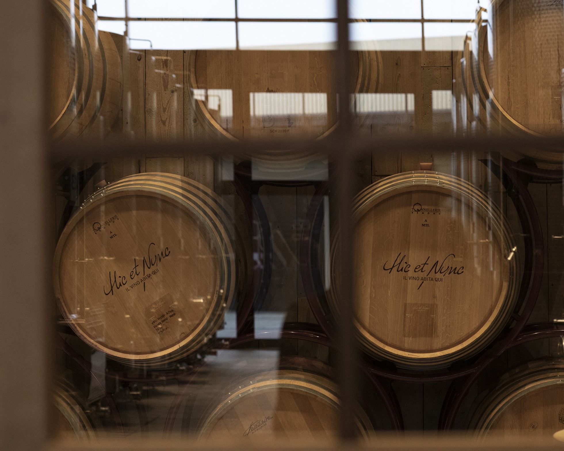A Vignale Monferrato, incastonata tra le colline del Monferrato e circondata da vigneti, troviamo una cantina unica nel suo genere. Una cantina, che grazie alle grandi vetrate si fonde con il paesaggio circostante: ecco Hic et Nunc, un invito, un augurio a vivere il presente, il qui, ora e adesso, come ci ricorda Orazio.