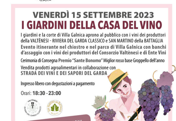 Estate in Valtènesi: il 15 settembre a Puegnago torna l’evento del Consorzio Valtènesi “I Giardini della Casa del Vino”