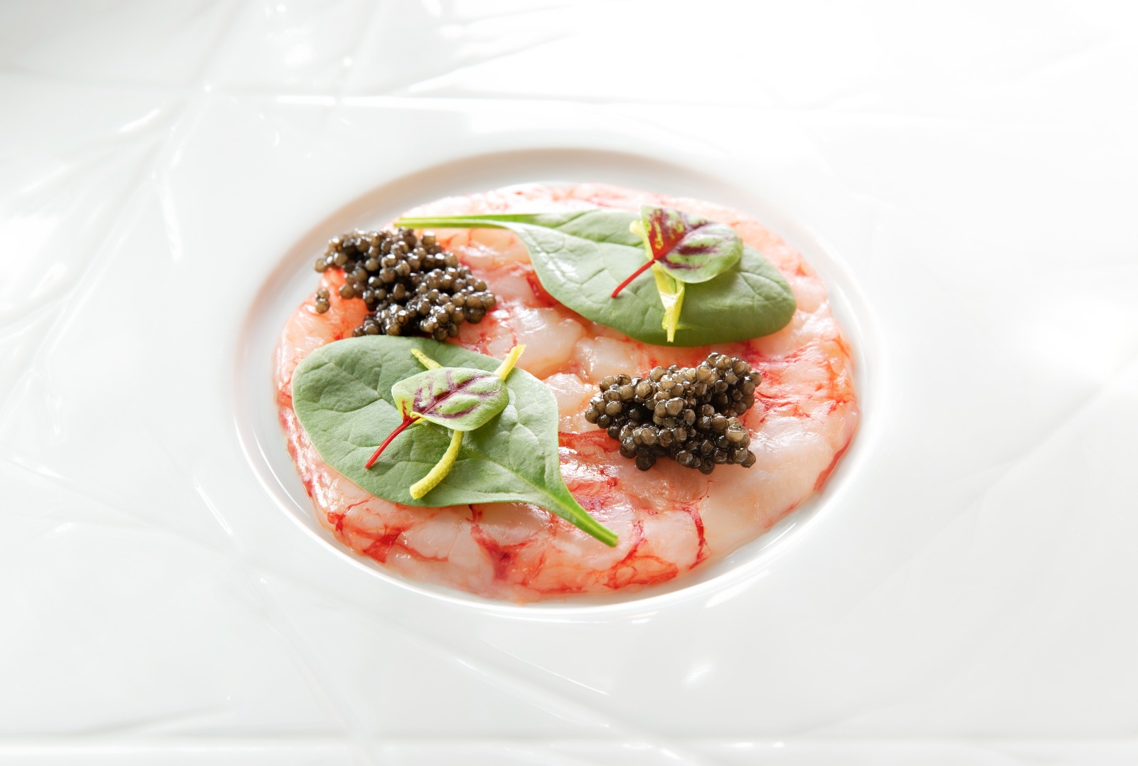 Carpaccio di gambero rosa, zeste di lime e Caviale Calvisius Tradition