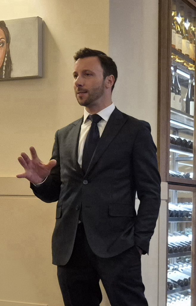 Alessio Durazzi – Direttore del Consorzio di Tutela del Morellino di Scansano dal 2016, con un background professionale sviluppato nel Marketing ed Export Management per il settore agroalimentare durante i dieci anni precedenti – durante la presentazione dei MORELLINO del CUORE 2025 a Milano.