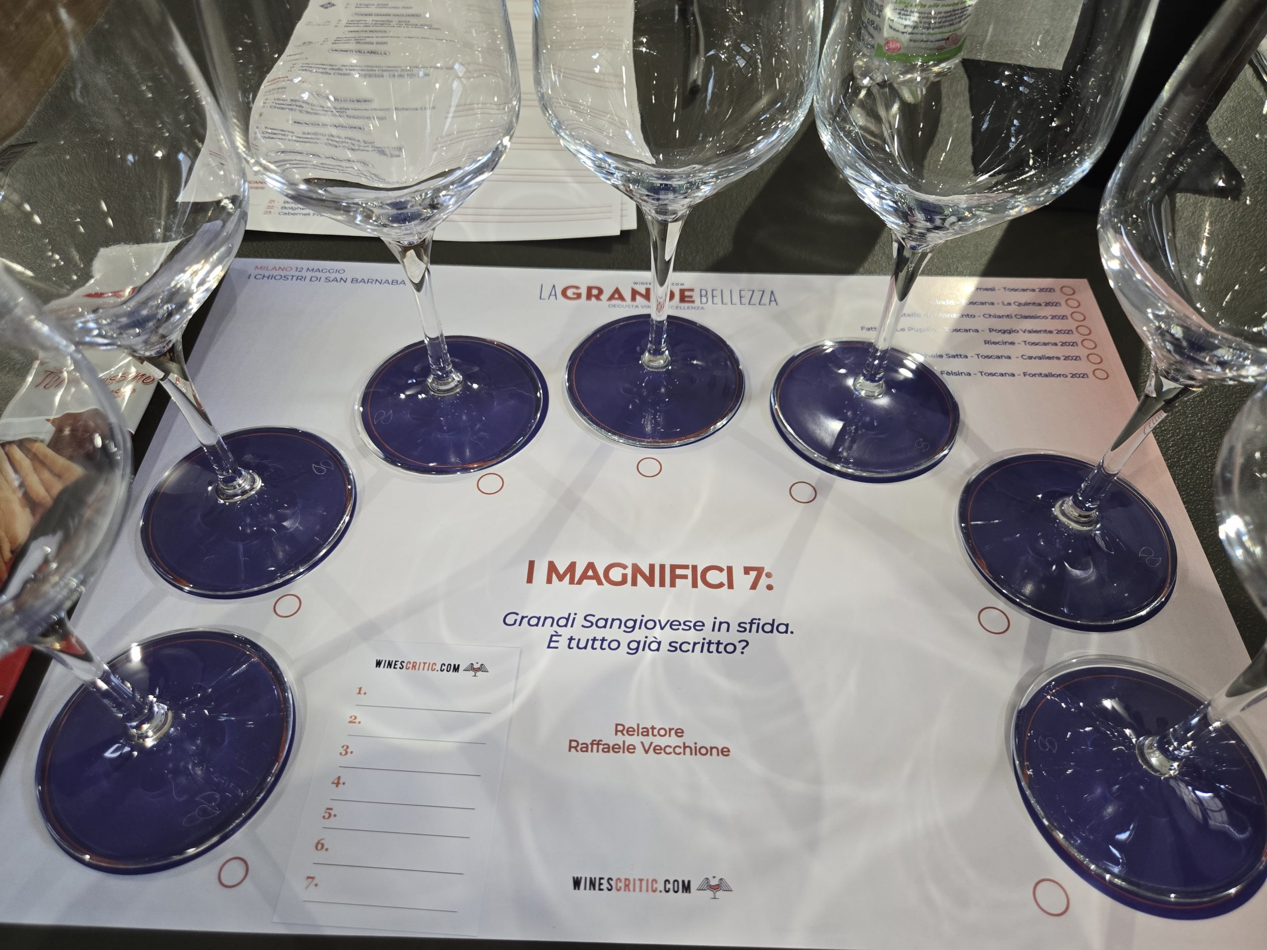 L’appuntamento meneghino è stato l’occasione per “I Magnifici 7”, una straordinaria degustazione tecnica di 7 grandi vini base Sangiovese dell’annata 2021, rigorosamente alla cieca anche per il relatore, l’enologo e critico Raffaele Vecchione.