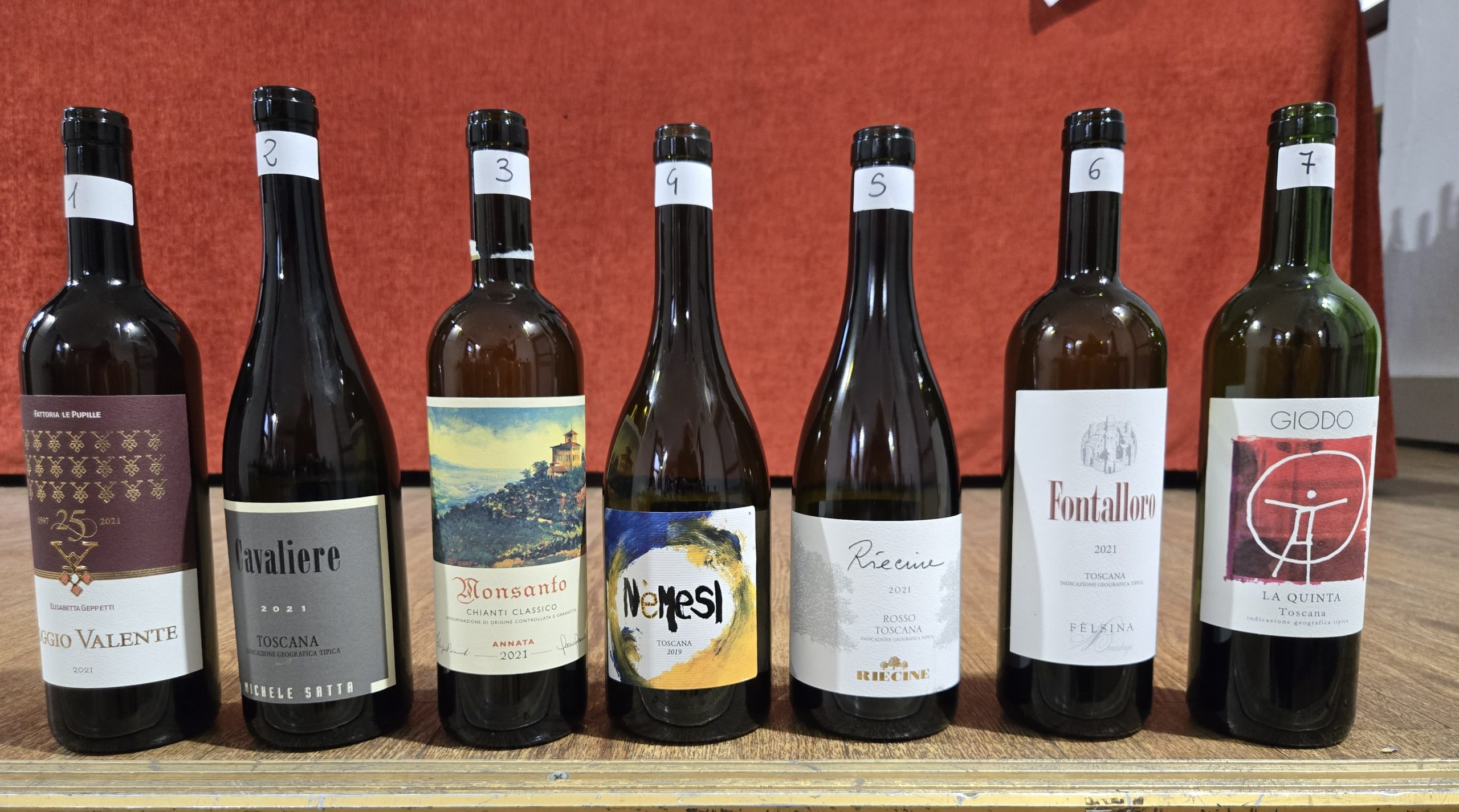 Nell’intento di dare una panoramica delle diverse espressioni del Sangiovese sono stati scelti vini prodotti in diverse zone della Toscana. Molto interessante e istruttiva la ricerca “a occhi bendati” dei caratteri che potrebbero contraddistinguere le diverse aree di produzione per contestualizzare ogni esemplare nella sua terra di origine.