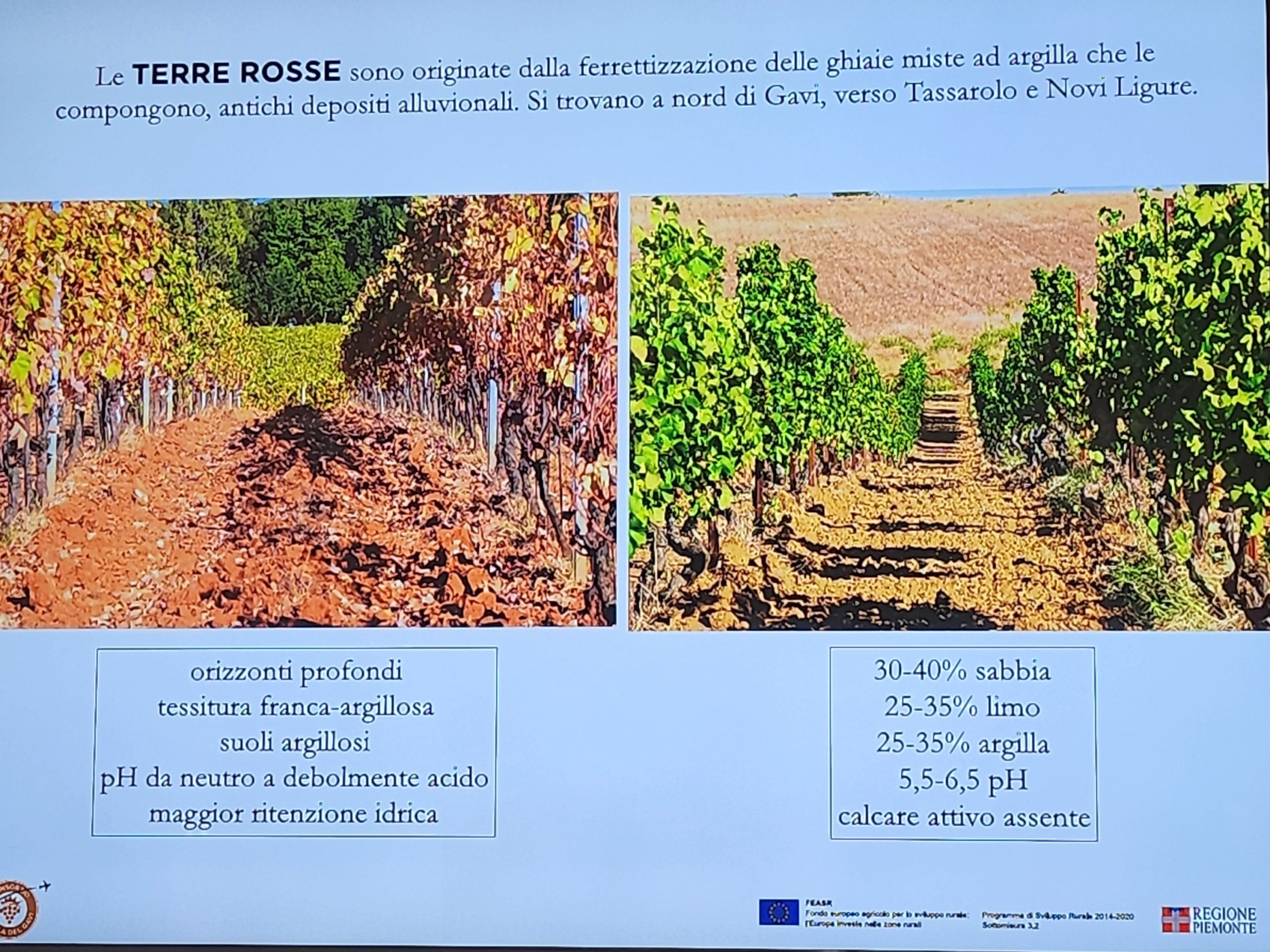Da nord a sud si possono distinguere due tipi di terroir: le argille rosse di origine fluviale ricche di ferro e povere di calcare caratterizzate da maggiore profondità del suolo e le terre bianche con alternanza di marne tufacee ricche di fossili e profondità dei suoli inferiori che obbligano le radici a farsi strada e incastrarsi nella roccia. Man mano che si scende a sud verso il confine con la Liguria le altitudini diventano maggiori e i climi più freschi. L’area su cui si estende la denominazione non è totalmente vitata, ma è caratterizzata da notevole biodiversità con alternanza di altre coltivazioni, prati e boschi.