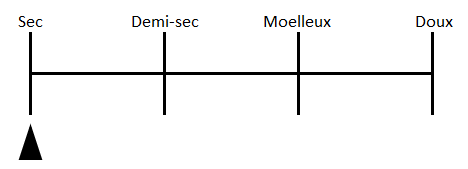 ** Demi-Sec : se il grado zuccherino del vino si situa al di là dei 4 g/l ma non è superiore ai 12 g/l (o 18 g/l se il grado di acidità totale espressa in grammi di acido tartarico per litro non è inferiore a più di 10 g/l al grado di zucchero residuo)