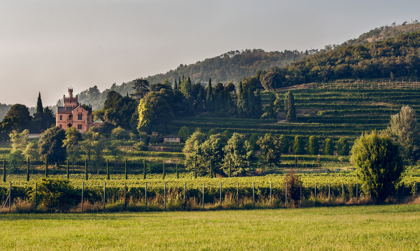 Castello Bonomi è l’unico château della Franciacorta: sorge alle pendici del Monte Orfano, 275 m s.l.m., nel comune di Coccaglio. Circondati da un parco secolare, per 24 ettari gli splendidi vigneti si sviluppano a gradoni e sono ancora recintati da un muro a secco risalente a metà Ottocento.