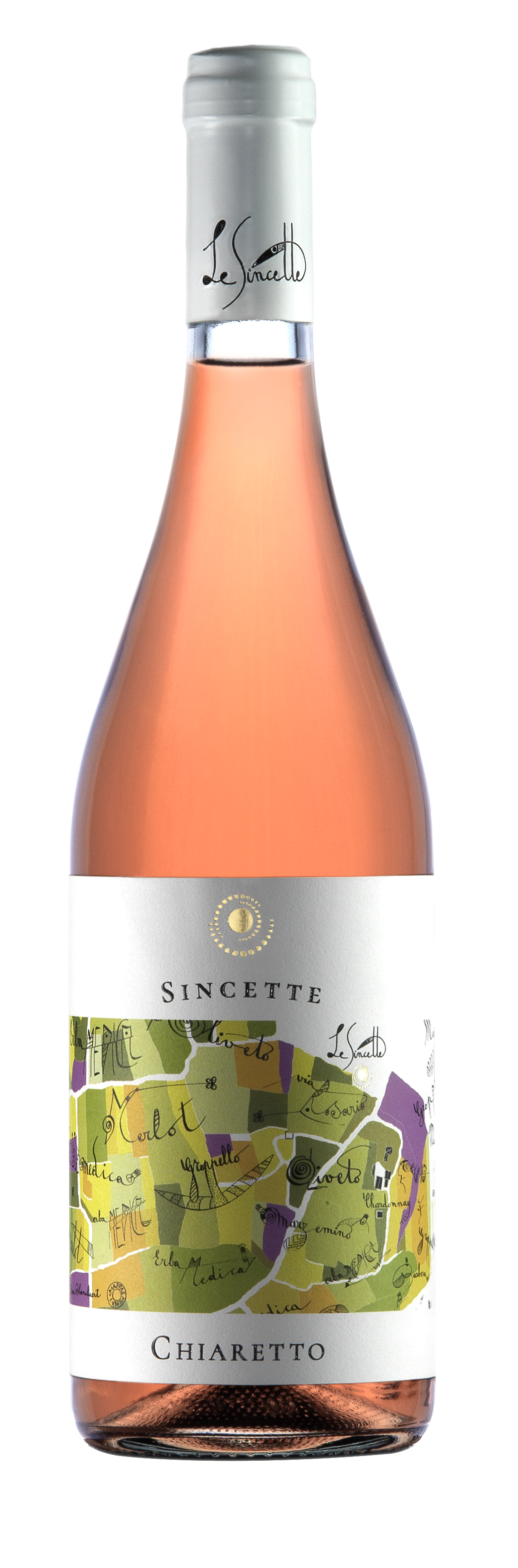 Nell’etichetta che lo riveste, rappresentazione del “disordine organizzato” di territorio, flora e fauna, prende forma il metodo biodinamico di Sincette: l’ascolto della natura nel rispetto delle leggi che la governano e la coltivazione della terra senza arrecarvi danno.
