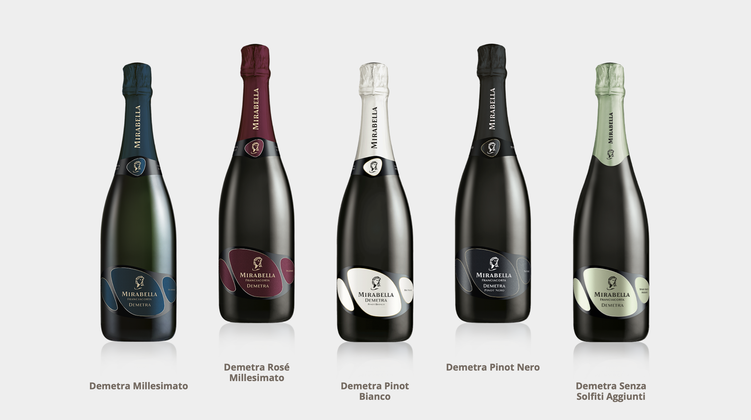 Per valorizzare sia i vitigni franciacortini sia lo stile aziendale, accanto alla più classica linea della Franciacorta di Mirabella, nasce la linea Demetra, i Brut Nature creati con le uve dei vigneti storici, che entra molto più nel dettaglio con il classico storico millesimato dove tutti i 3 vitigni vengono uniti con una sosta sui lieviti ben superiore ai 30 mesi di disciplinare. Potremmo dire che il millesimato si divide in tre declinazioni che sono i tre vitigni: Pinot Nero e Chardonnay entrambi in purezza, ma quest’ultimo si differenzia da un classico Franciacorta, fatto senza nessuna aggiunta di allergeni e in particolare nessuna aggiunta di solfiti. Questo prodotto nasce nel 2008 da un progetto di Mirabella di eliminare questa aggiunta esogena per valorizzare sempre più la tipicità e in particolare sullo Chardonnay che è il vitigno rappresentativo della Franciacorta su cui è stato investito molto. Un vino senza solfiti, ma la tecnica con cui viene prodotto, oltre che a permettere di evitare di aggiungere i solfiti, contiene anche un livello molto basso di solfiti prodotti naturalmente dai lieviti tanto che permette di non dichiarare la famosa frase “contiene solfiti” in etichetta perché si è abbondantemente sotto i 10 milligrammi litro, e più precisamente intorno ai 6/7 milligrammi litro. Ovviamente non viene prodotta tutti gli anni, proprio perché la prerogativa di questa bottiglia di Franciacorta è l’impeccabilità delle uve che non devono subire nessun tipo di stress sia climatico, sia fitosanitario o idrico, che non permetta loro di avere le caratteristiche minime per entrare a far parte della linea del senza solfiti. L’ultimo vitigno in purezza non può che essere il Pinot Bianco, tra i primi in Franciacorta, se non i primi, nel vinificarlo e spumantizzarlo in purezza.