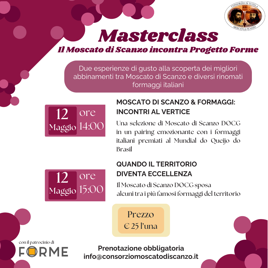 Durante l’evento, saranno organizzate due masterclass condotte da Maíra Vasques, membro della Guilde International des Fromagers, e Federico Bovarini, miglior Sommelier di Lombardia 2023, che guideranno i visitatori in un viaggio sensoriale alla scoperta dei migliori abbinamenti tra Moscato di Scanzo e diversi rinomati formaggi italiani: