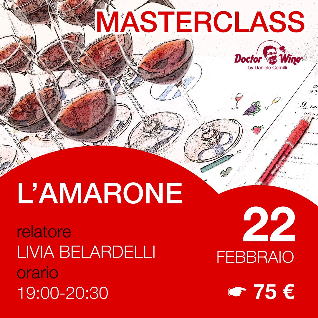 Tutte le informazioni sulla masterclass di giovedì 22 febbraio, la prenotazione, i costi qui: Masterclass “L’AMARONE” – 22 febbraio 2024 – MILANO – DoctorWine.