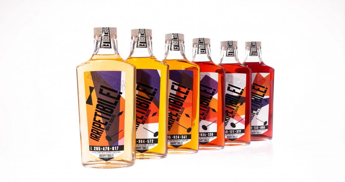 Il packaging di IRRIPETIBILE! American è il primo nel mondo delle bevande alcoliche e analcoliche a differenziarsi da bottiglia a bottiglia, trasformando ciascun esemplare in un oggetto da collezione.