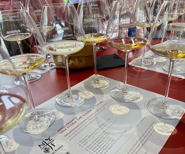 Riprendendo il concetto di “buoni subito e sorprendenti dopo anni di affinamento” e della “valorizzazione e dello studio del vitigno Glera” all’Enoluogo di Milano si è potuto toccare, pardon degustare, questa filosofia di Primo Franco che, con la figlia Silvia, ha condotto una degustazione che potremmo dire senza precedenti.