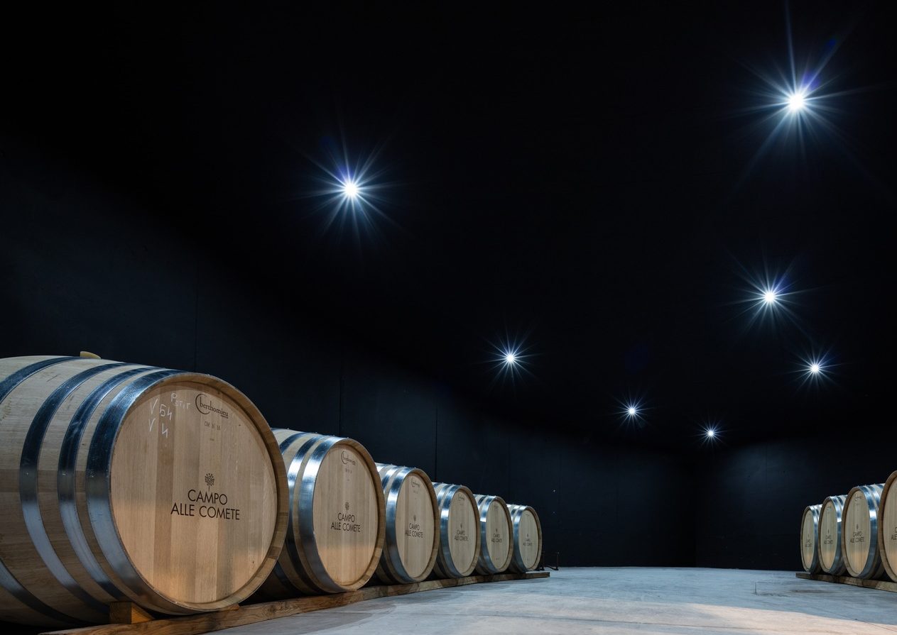 Campo alle Comete si trova nel cuore di Bolgheri, al centro della Maremma Livornese, nel comune di Castagneto Carducci. Fiore all’occhiello nonché avamposto toscano del gruppo Feudi di San Gregorio, la cantina ad oggi lavora su 21 ettari di vigna valorizzando le varietà Merlot, Cabernet Sauvignon, Cabernet Franc, Syrah, Sauvignon Blanc e Vermentino. Campo alle Comete è l’incontro fra la consolidata filosofia vitivinicola di Feudi di San Gregorio e uno dei territori del vino più prestigiosi al mondo. Nasce, così, un’azienda sospesa tra sogno e realtà, che ha ispirato la matita della nota illustratrice Nicoletta Ceccoli nel quadro ad essa ispirato.