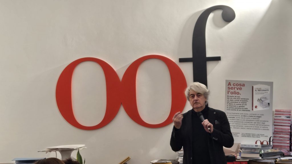 Luigi Caricato, giornalista, oleologo, autore di molti libri sull’olio, editore, da anni si prodiga per rivoluzionare il metodo dell’analisi dell’olio e introdurre un linguaggio che valorizzi la sensorialità anche in etichetta. Una “battaglia” che lo porta a dialogare e a scontrarsi spesso con le istituzioni e che trova la sua espressione annuale in Olio Officina Festival, l’unico think tank europeo sull’olio e i condimenti. Tra i vari temi traviamo l’attuale allontanamento dei giovani dall’olio e l’esigenza da un lato di spiegare loro la sua essenzialità in una dieta sana, dall’altro di trovare forme più accattivanti per proporlo come condimento negli ambienti che frequentano.