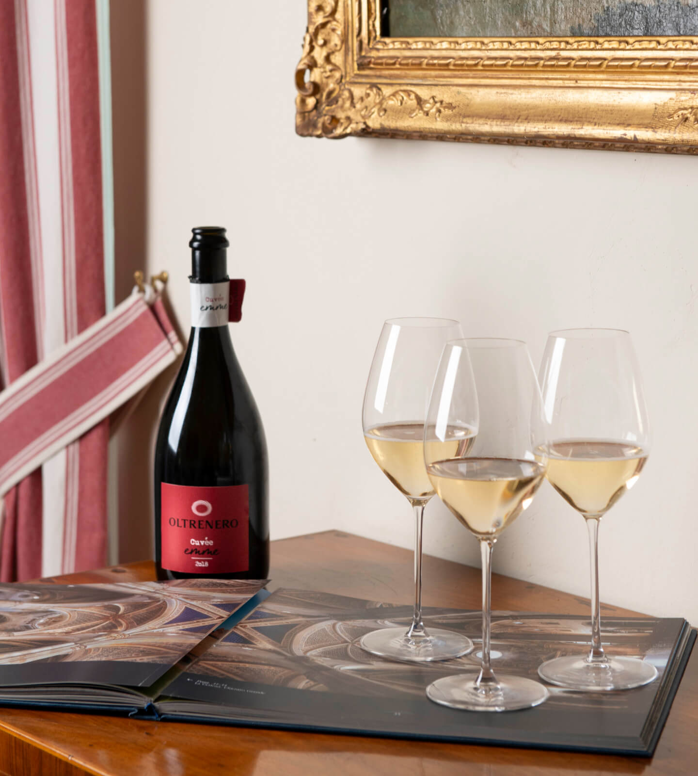 Cuvée Emme 100% Meunier 2018: viste alcune similitudini che accomunano questo territorio alla Champagne si è deciso di introdurre il Meunier, inoltre essendo meno precoce del Pinot Nero tende a soffrire meno gli effetti di eventuali gelate. Dopo alcune microvinificazioni si è deciso di presentare questa bollicina unica nel suo genere. Un Blanc de noir, 30 mesi sui lieviti, color ramato delicato, un bouquet articolato con accenni di mela cotogna, pera, susina gialla, fragola, vaniglia e un tocco mentolato e speziato; intrigante e particolare il sorso, cardamomo, torna la mela e la pera, voluttuoso e croccante, avvolgente e di grande soddisfazione.